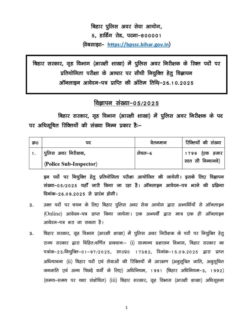 बिहार पुलिस बिहार पुलिस SI भर्ती/सब-इंस्पेक्टर भर्ती 2025: पूरी जानकारी